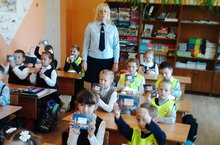 Закрытие месячника безопасности дорожного движения в МБОУ «Верхнеуслонская гимназия» ознаменовалось сегодня акцией «Засвети». В гости к первоклассникам пришла Надежда Аксенова, она провела с ребятами беседу по правилам дорожного движения и подарила каждому первокласснику Дневник пешехода и светоотражающий браслет.