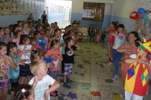 Редкий день в детском пришкольном лагере «Радуга» обходится без каких-либо конкурсов, ролевых игр или же театрализованных представлений. Вот и сегодня, 9 июня, в лагере долгожданный день - День юмора и смеха. В зале на стене висят плакаты, на которых написаны пословицы, поговорки, афоризмы. Эмблема – улыбка.