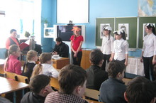 Ученики 9 класса Бакирова Регина, Сычев Андрей и Арефьев Тимофей с педагогом-организатором Еленой Соловьевой вернулись с республиканского сбора-совещания представителей детских общественных объединений при учреждениях образования, посвященного проведению мероприятий к 90-летию пионерской организации.