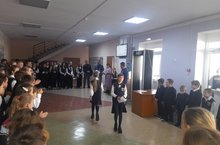 После классного часа на линейке 9 класс отчитался о дежурстве и передал его 8 классу, также были вручены грамоты за участие в конкурсах и мероприятиях прошедшей недели. Честь поднять флаги сегодня выпала нашим отличникам – Корневу Арсению и Барановой Милане.