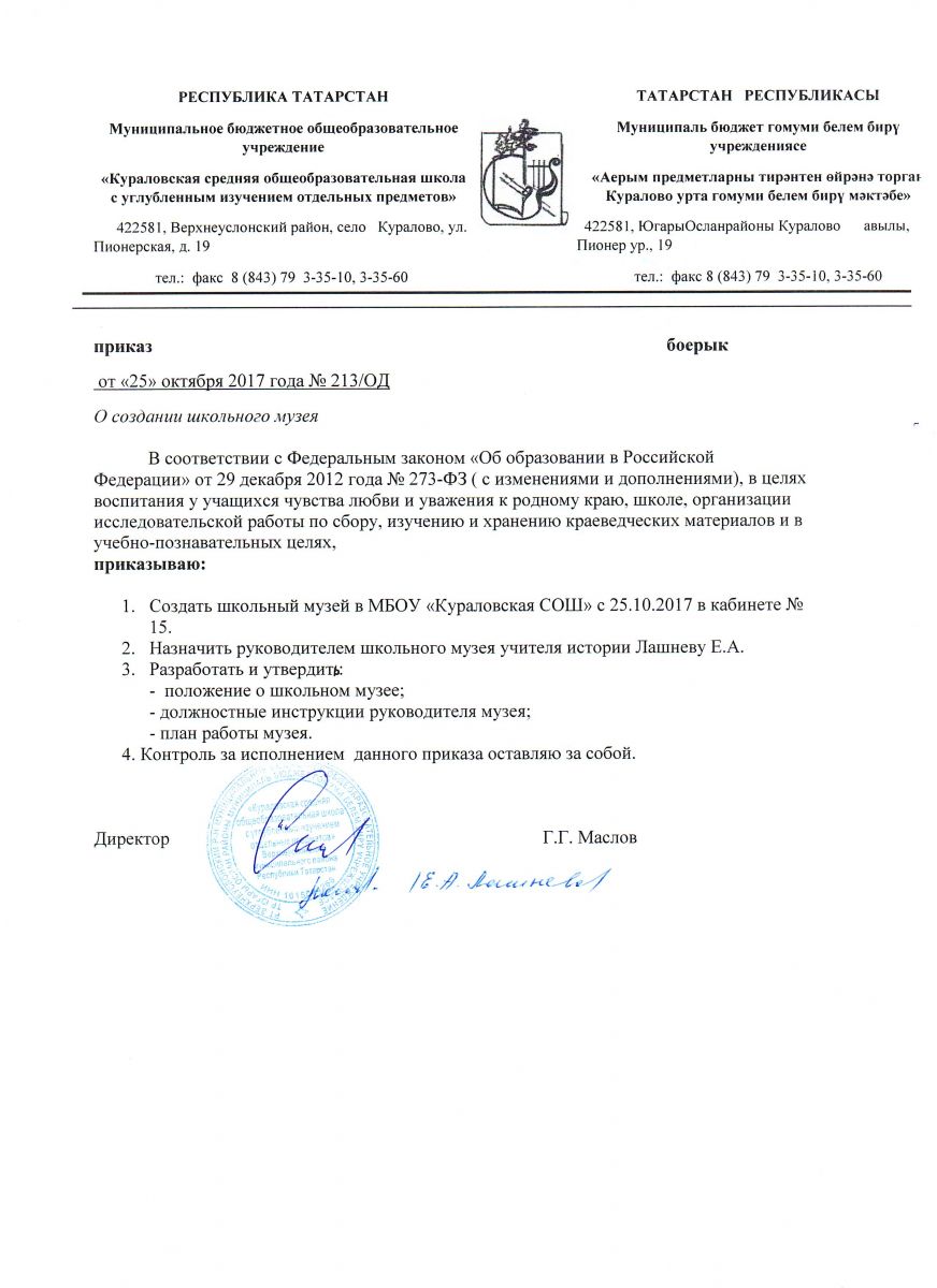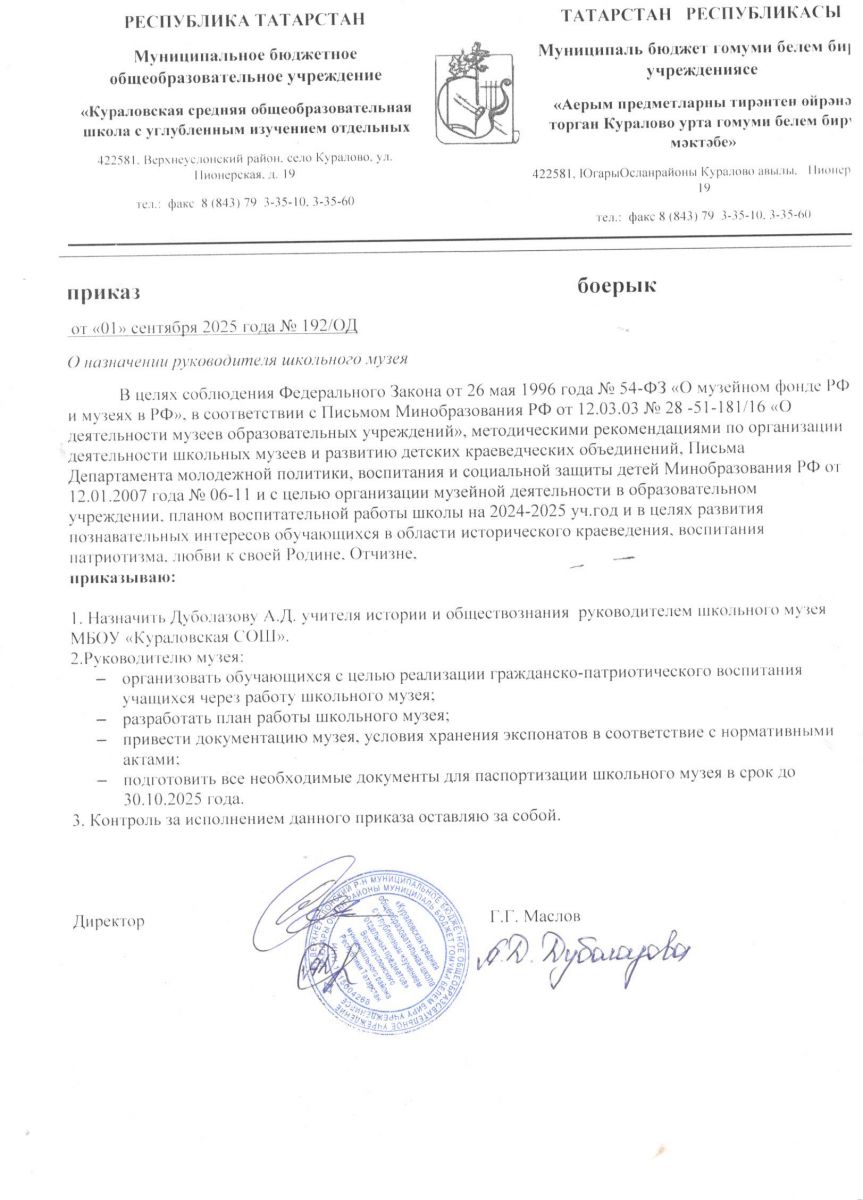 муниципальное бюджетное общеобразовательное учреждение «Кураловская средняя общеобразовательная школа с углубленным изучением отдельных предметов» Верхнеуслонского муниципального района Республики Татарстан/Татарстан Республикасы Югары Ослан муниципаль районы «Аерым фәннәрне тирәнтен өйрәнә торган Куралово урта гомуми белем бирү мәктәбе» муниципаль бюджет гомуми белем бирү учреждениесе