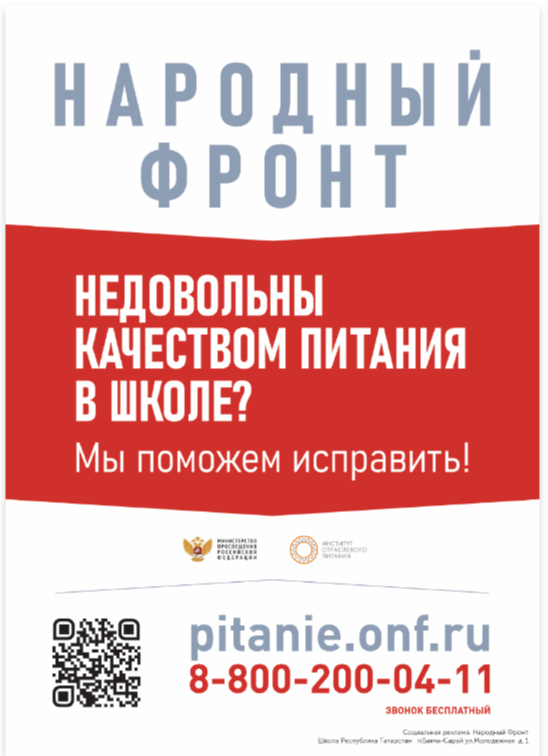 Опубликовано: 31.05.2024QR-код горячей линий ОНФ «Школьный завтрак» для обращения граждан