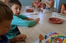 Сегодня на занятии по конструированию. Воспитанники старшей группы вместе с воспитателем Александрой Гильвановой изготовили тренажер из бумаги "Лягушка". Данный тренажер помогает развивать ловкость.