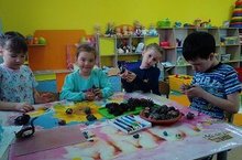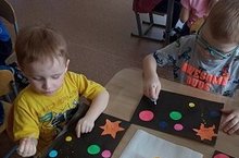 В преддверии Дня космонавтики воспитанники младшей группы выполнили аппликацию "Космос".