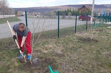 В рамках санитарно-экологического месячника по благоустройству территории сотрудники детского сада посадили кусты сирени.