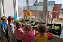 Воспитатель Татьяна Гущина и её юные воспитанники младшей группы реализуют проект "Огород на подоконнике".