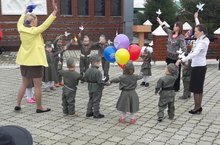 В завершении, воспитанники, вместе с сотрудниками детского сада выпустили воздушные шары в небо и подарили ветеранам изготовленые своими руками голубей! -