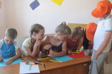 "Мәктәп яны лагерында кунакта" 05.06.2014 5 июня 2014г. воспитанники МБДОУ «Нижнеуслонский детский сад» побывали в гостях в пришкольном лагере МБОУ «Нижнеуслонская ООШ» «Оранжевое лето». Совместно с вожатыми воспитатели организовали для ребят конкурс рисунка «Нарисуй своего друга», задача, которой была не только нарисовать друга, а еще подарить свою творческую работу другу. Творческий процесс оказался очень увлекательным, так как ребята смогли проявить свою фантазию. Воспитанники детского сада многому научились у своих старших братьев и сестер. В гостях, в лагере им очень понравилось, они обещали прийти еще!