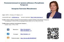Уполномоченный по правам ребенка в Республике Татарстан Захарова Светлана Михайловна