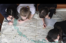 МБОУ “Октябрьская СОШ” ученики 11 класса учатся на карте звёздного неба по созвездию Большой Медведицы отыскивать Полярную звезду,