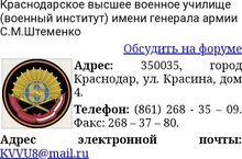 Краснодарское высшее военное училище (военный институт) имени генерала армии С,М,Штеменко) 30.05.2000