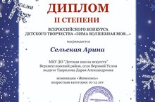 Подведены итоги Всероссийского конкурса детского творчества " Зима волшебная моя...". Конкурс проходил в Детской школе искусств №6 "Да-Да", города Набережные Челны.