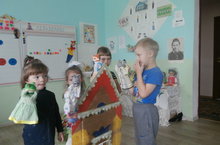 В завершение игры, школьники предложили малышам проинсценировать всеми любимую сказку «Теремок».