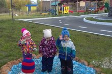 Сегодня выдалась удивительно теплая погода и ребята 1 младшей группы "Огоньки" отправились по территории детского сада с экскурсией. ребята рассматривали цветы бархатцев, петуний, которые радуют нас еще своим цветением. По дороге им встретилась сказочные герои: Баба - Яга, Старичок-лесовичок, который убирал опавшие листочки. После ребятки побывали в теремочке. Немного поиграв малыши отправились в обратный путь, где встретили паучка, греющегося на солнце. Он проводил ребят в сад-огород. Детвора с удовольствием рассматривали маленькие зеленые елочки, а капуста , выращенная старшими группами привела их в восторг. По мосточку из разноцветных пенечков малыши дошли до волшебного озера, где загадали хорошей погоды на завтра. Будем надеяться, что желание малышей обязательно исполнится.