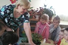 Дети 2-младшей группы «Торопыжки» МБДОУ Верхнеуслонский детский сад «Солнышко» с воспитателем Ириной Якимовой с удовольствием наблюдали за своими ранее посаженными всходами цветов для высадки на клумбы.