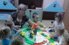 Сегодня, 03 февраля 2016 года, воспитанники старшей группы «Солнечные лучики» МБДОУ Верхнеуслонский детский сад «Солнышко» с воспитателем Ольгой Сутуловой делали аппликацию «Наш веселый светофор» из цветных салфеток.