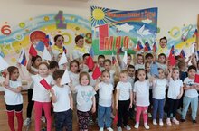 Сегоджня в детском саду " Солнышко" прошел зажигательный флешмоб «Мир! Труд! Май!», посвященный празднику 1 мая.