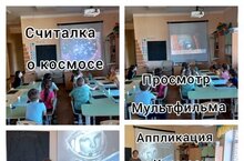 В процессе беседы ребята прослушали песни «Марш юных космонавтов», «Наш весёлый экипаж», просмотрели и заучили счеталочку о планетах, вспомнили стихи о космосе.