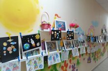 В преддверии праздника День Космонавтики 11 апреля в детском саду была организована выставка детских рисунков «Космическое путешествие». Цель выставки: расширение представлений детей о космосе, развитие творчества и фантазии. Космос привлекает детей своей загадочностью и неизвестностью, поэтому с большим интересом и желанием ребята из старших и подготовительных к школе групп приняли участие в подготовке рисунков на космическую тему. Дети отражали в работах свои фантазии на темы космических путешествий, представляя себя космонавтами, выходящими в открытый космос, встречу с инопланетянами. На их работах можно увидеть разнообразные космические объекты, ракеты, планеты, созвездия, кометы. Выполнены работы в смешанной технике рисования восковыми мелками и акварелью.