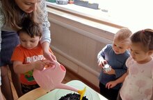 Вот и в нашей группе раннего возраста детишки с воспитателями посадили лук. Теперь каждый день мы поливаем наши посадки и ждем, пока они вырастут. А потом будем собирать урожай! Нет ничего приятнее, когда первая зелень тянется вверх к солнышку прямо у нас на подоконнике! -