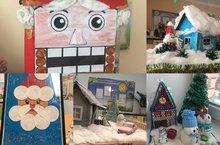 Этому волшебному празднику были посвящены выставки рисунков, рисунки детей отражают атмосферу приближающегося праздника, ожидание чуда и сказки, мечты о подарках из волшебного мешка Деда Мороза.