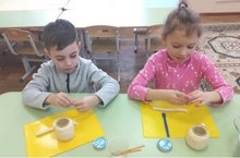 Соленое тесто для лепки с детьми легко готовить, не требуется дорогостоящих компонентов. Вот и в этот раз ребята вместе с воспитателем делают новогодний сюрприз: копилка - подсвечник.