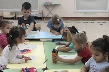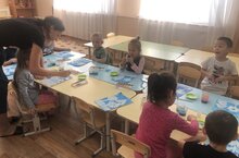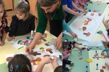 Малыши очень старались, так как создание аппликации предполагает работу с различными предметами (карандаши, ножницы, кисточка и клей) и материалами (от привычных бумаги и картона до ватных дисков, ткани, круп, салфеток).