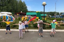 В рамках патриотического воспитания и тематической недели «Мы живём в России», посвященной России, были проведены досуговые мероприятия и занятия. Дети узнали о государственных символах: флаге, гербе, гимне. Познакомились с республиками, которые входят в состав страны и их культурными и этническими особенностями. В конце тематической недели 11 июня было проведено итоговое развлечение. В начале праздника дети вспомнили, что нового они узнали о своей стране. Вспомнили о государственных символах. Рассказали стихи, пели песни, играли в подвижные и музыкальные игры. Ребята вспомнили работы по художественной деятельности, которые тоже являются своеобразным символом нашей страны.Закончился праздник флеш-мобом «Вперед, Россия!». Все дети получили большой заряд энергии и хорошего настроения. Подобные мероприятия приобщают наших детей к русской культуре, к традициям русского народа, воспитывают чувство патриотизма у подрастающего поколения.