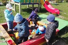 Детям очень нравится на песке делать отпечатки ладошек, изображать пальчиками следы животных. А ещё очень интересно закапывать в песок свои ручки. Ребята младшей группы получили массу впечатлений и удовольствие от игр с песком. -