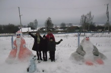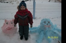 25 декабря 2013 года в МБДОУ «Печищинский детский сад» на прогулке наши ребята с воспитателями вылепили из снега героев из мультфильма «Смешарики» и раскрасили их.