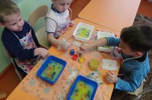 Сегодня наши детки познакомились с нетрадиционной техникой рисования Эбру. Этот особый метод рисования предполагает использование в качестве холста необычную поверхность – воду. Конечно, вода эта должна быть не простая, а подготовленная специальным образом. Краски тоже используются особенные: на натуральной основе. В результате получаются невероятные по красоте картины, повторить которые практически невозможно. Такой необычный способ рисования увлекает маленьких непосед надолго. К тому же Эбру развивает фантазию и творческое мышление, что так важно для детей любого возраста.