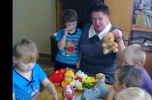 Балалар белән уенчыклар, аларның татарча атамалары белән таныштык. “Уенчыклар кибетендә” дигән уен уйнап, “Миңа курчак (туп, куян һ.б.) бирегез әле” тезмәсен әйтергә өйрәндек. “Серле янчык” уены аша, балаларның тотып карау, тоемлау күнекмәләре тикшерелде. Алар янчыкны тотып карап моның нинди уенчык икәнен белергә тиеш иделәр.