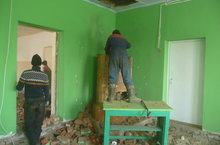 В МБДОУ”Шеланговский детский сад”в рамках капитального ремонта строительная бригада организовала работы по разбору полов, потолков и печей. Вывоз строительного мусора осуществляется ежедневно при помощи сотрудников детского сада.