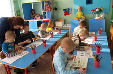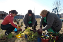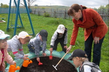 В МБДОУ "Татарско-Бурнашевский детский сад" дети совместно с воспитателем сажают цветы на клумбах.