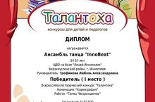 Именно такому девизу последовала в этот нелегкий для всех период самоизоляции педагог Центра дополнительного образования Любовь Трофимова. Она отправила видеозапись творческого номера ансамбля танца «InnoBeat», руководителем которого она является, и завоевала в конкурсе для детей и педагогов «Талантоха» свое почетное первое место. Поздравляем танцевальный коллектив с победой! Всем вам желаем проявлять фантазию и реализовывать творческий потенциал, последовав примеру Любови Трофимовой, и участвовать в удаленных конкурсах. Всем творческих успехов и новых побед!
