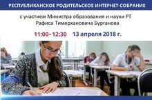 Приглашаем принять участие в Республиканском родительском интернет-собрание, которое состоится 13 апреля с 11.00 до 12.30. Он-лайн трансляция будет вестись по ссылке https://ieml.ru/