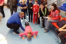 Сегодня на базе ФОК «Чемпион» с. Верхний Услон прошел Фестиваль Всероссийского физкультурно-спортивного комплекса «Готов к труду и обороне» среди 2-5 ступеней. В фестивале приняли участие 14 общеобразовательных учреждений. Учащиеся выполняли нормативы по таким видам как: подтягивание, отжимание, наклон вперед из положения стоя, прыжок в длину, поднимание туловища.