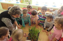 Дети старшей группы с воспитателем и педагогом дополнительного образования МБОУ ДОД «Станция юных туристов Верхнеуслонского муниципального района РТ» Людмилой Тимиряевой вырастили лук на подоконнике. Ежедневно дети поливали лук и наблюдали, как появляются зеленые перышки. Педагог рассказала детям о том, что лук - самый обычный овощ, однако его состав не так прост, как кажется с виду. Познакомила воспитанников с его полезными свойствами.
