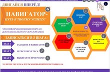 С помощью навигатора Вы, не выходя из дома, сможете выбрать образовательную организацию и дополнительную общеобразовательную программу в соответствии с индивидуальными запросами, уровнем подготовки и способностями ребенка и подать онлайн-заявку (электронная запись) на обучение по выбранной программе с помощью инструкции или путеводителя по навигатору.