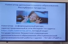 28 мая в рамках совещания руководителей образовательных организаций Верхнеуслонского муниципального района был рассмотрен вопрос о внедрении Навигатора дополнительного образования Республики Татарстан. Елена Соловьева, заместитель директора по учебно-воспитательной работе Центра дополнительного образования, познакомила участников совещания с приказом № под-732/21от 19.05.2021 МОиН РТ «О внедрении Навигатора дополнительного образования Республики Татарстан». Рассказала об информационном ресурсе –Навигатор, о структуре его работы.