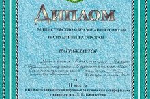 теме « Взаимосвязь культуры в произведениях русской и татарской культуры», представив сравнительный анализ произведения А.Солженицына «Матренин двор» и А.Еники «Невысказанное завещание»., и на секции «Экологическая» представили исследование по теме «Насекомые- вредители лесообразующих пород смешанного леса Верхнеуслонского района».