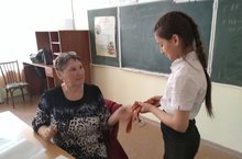 3 мая учащиеся МБОУ «Введенско – Слободская ООШ» участвовали в акции «Георгиевская ленточка». Под руководством Титковой М.А. мальчики и девочки дарили ленты всем жителям села. Перед началом акции, ребята познакомились с историей данного мероприятия. Ребятам задавали вопросы о том, что означают цвета чёрный и оранжевый, почему лента так называется. Они с лёгкостью давали правильные ответы.