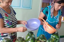 В МБОУ «Введенско-Слободская ООШ» этим летом отменно уродились огурцы. С каждого растения удалось собрать по ведру зеленцов. Пора делать запасы. Это только на первый взгляд кажется, что засолка огурцов - дело немудреное. На самом деле у процесса много секретов. У каждой хозяйки - свой кулинарный эксклюзив. Фарида Зарипова, Румия Семерханова и Юлдуз Саидова знают толк в этом деле. 11 августа они засолили около 12 банок. К таинству засолки огурцов необходимо подходить с особой фантазией и настроением, считают они. Улыбка на лице - самый важный ингредиент любого разносола. Равнодушный повар, пусть даже и четко следующий книжным рецептам, обречен на производство ординарных консервов. А с огурцами, засоленными с душой, не сравнятся никакие болгарские и венгерские заводские корнишоны.