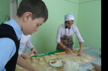 в рамках “Месячника родных языков”учащиеся 6-9 классов Введенско-Слободской основной школы обучались приготовлению любимого блюда татарской национальной кухни – кыстыбый.