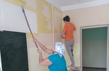 Подготовка к приемке школы. Обучающиеся 8 класса - Авхадиева Альмира и Каршиев Исломбек навестили школу и помогли в уборке класса.