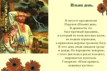 2 августа издавна на Руси отмечали необычный праздник- Ильин день. Считалось, что после этого дня лето подходит как концу, и приближается осень. Атрибутом празднования праздниками главным угощением считается новый урожай картофеля. Дети средней группы №3 с интересом слушали рассказ воспитателя об этом празднике, о том, откуда у нас в стране появился картофель и как стал незаменимым блюдом на столе. Дети рассматривали картинки с овощами, находили картофель в игре «Чудесный мешочек» разукрашивали главный овощ праздничного стола - картофель. Таким образом детям прививается любовь к русскому фольклору народным обычаям и традициям.
