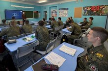 по специальности «Перевод и переводоведение» и «Лингвистическое обеспечение военной деятельности». Ирина Александровна отметила,что курсанты ежегодно принимают участие в международных олимпиадах и занимают лидирующие позиции, регулярно привлекаются для лингвистического обеспечения мероприятий государственного и международного уровня,тем самым совершенствуя свой уровень владения иностранными языками. Учащиеся кадетского корпуса проявили интерес к прослушанной информации и задали интересующие вопросы. -