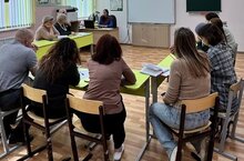 Заседание методического объединения классных руководителей во главе с руководителем методического объединения классных руководителей Полиной Германовной.