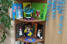 Персональная выставка учителя надомного обучения Абаимовой И.Л. расположена на первом этаже школы. На ней представлены работы учащихся надомного обучения Городницкого К., Банцырева В., Лотфуллина К.