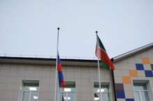 Торжественное поднятие государственных флагов РФ и РТ во главе с Ильнуром Шамилевичем